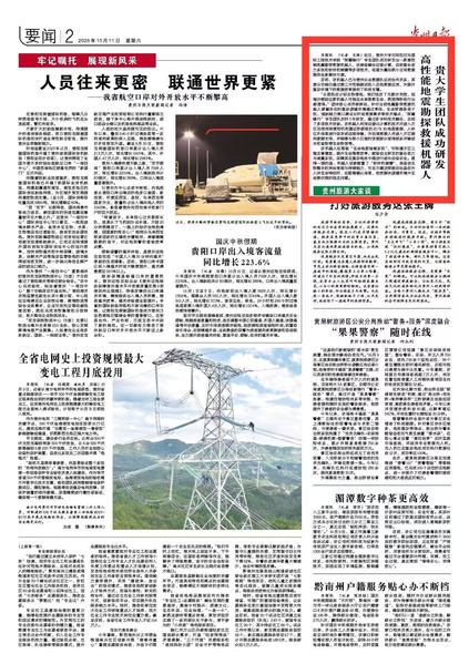 貴州日?qǐng)?bào):貴大學(xué)生團(tuán)隊(duì)成功研發(fā)高性能地震勘探救援機(jī)器人